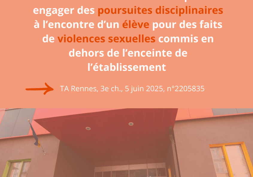 Un établissement scolaire peut engager des poursuites disciplinaires à l’encontre d’un élève pour des faits de violences sexuelles commis en dehors de l’enceinte de l’établissement